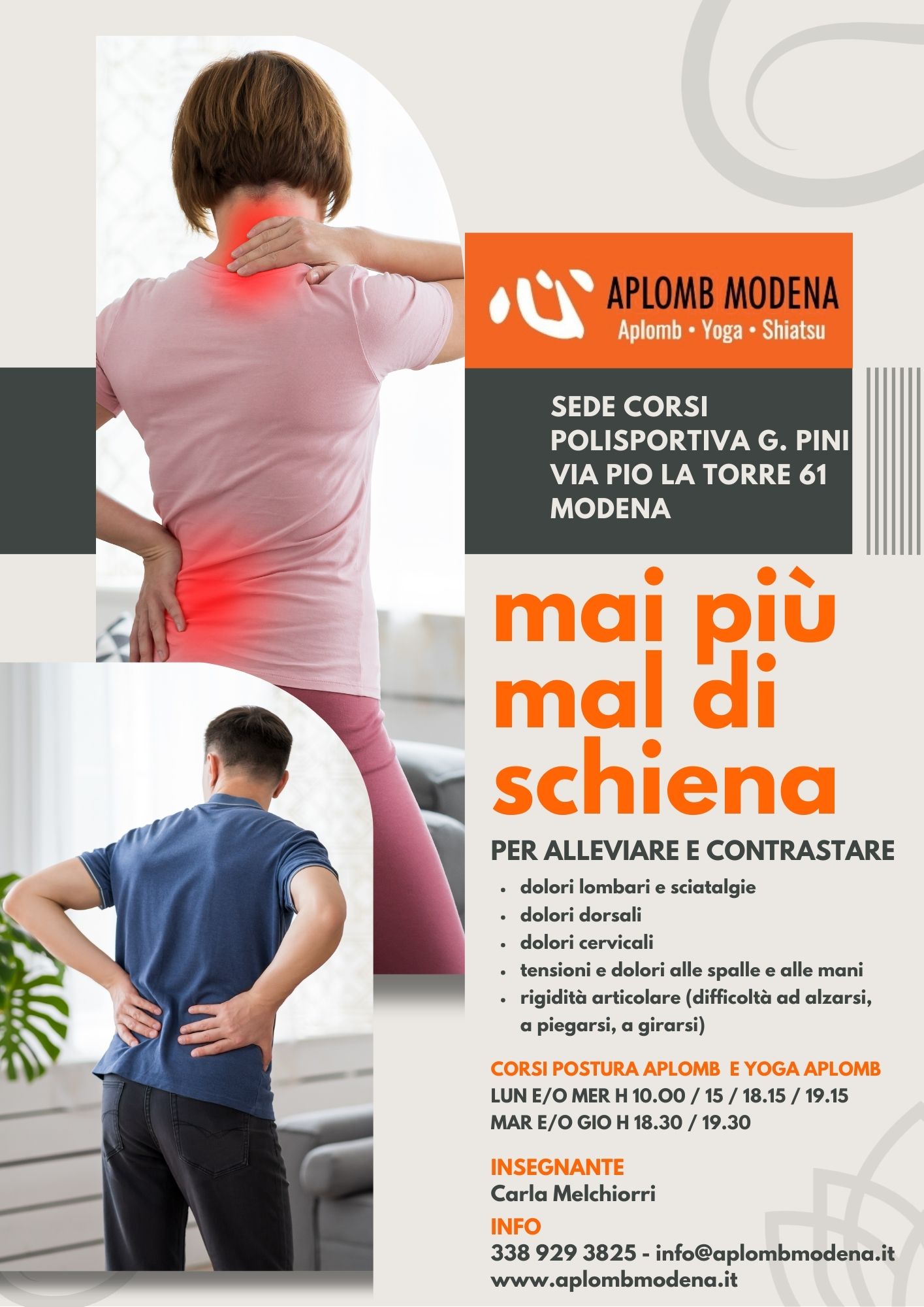 Aplomb, Shiatsu, Yoga, Do-in, Etnografia, Anatomia, Medicina Tradizionale Cinese, Moxa e Coppettazione.